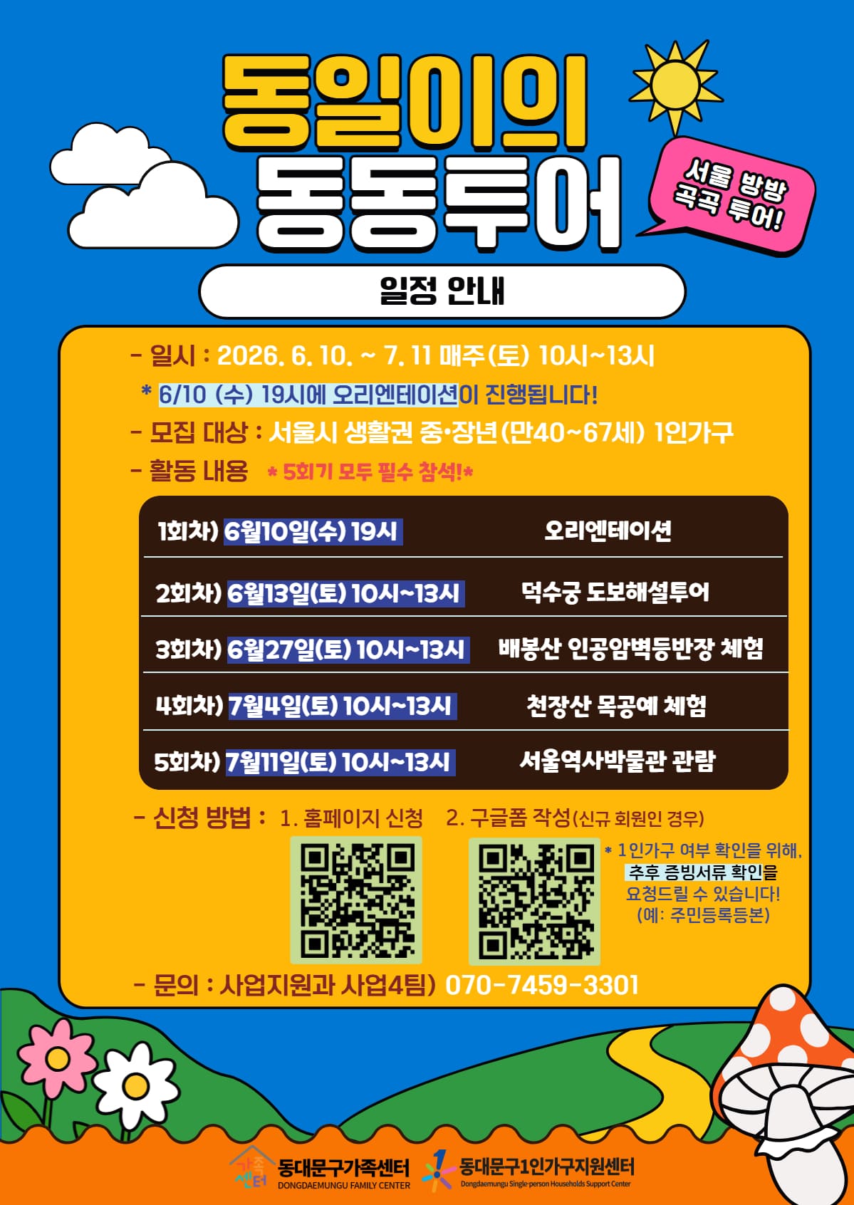 안녕하세요! 동대문구가족센터 1인가구지원팀입니다