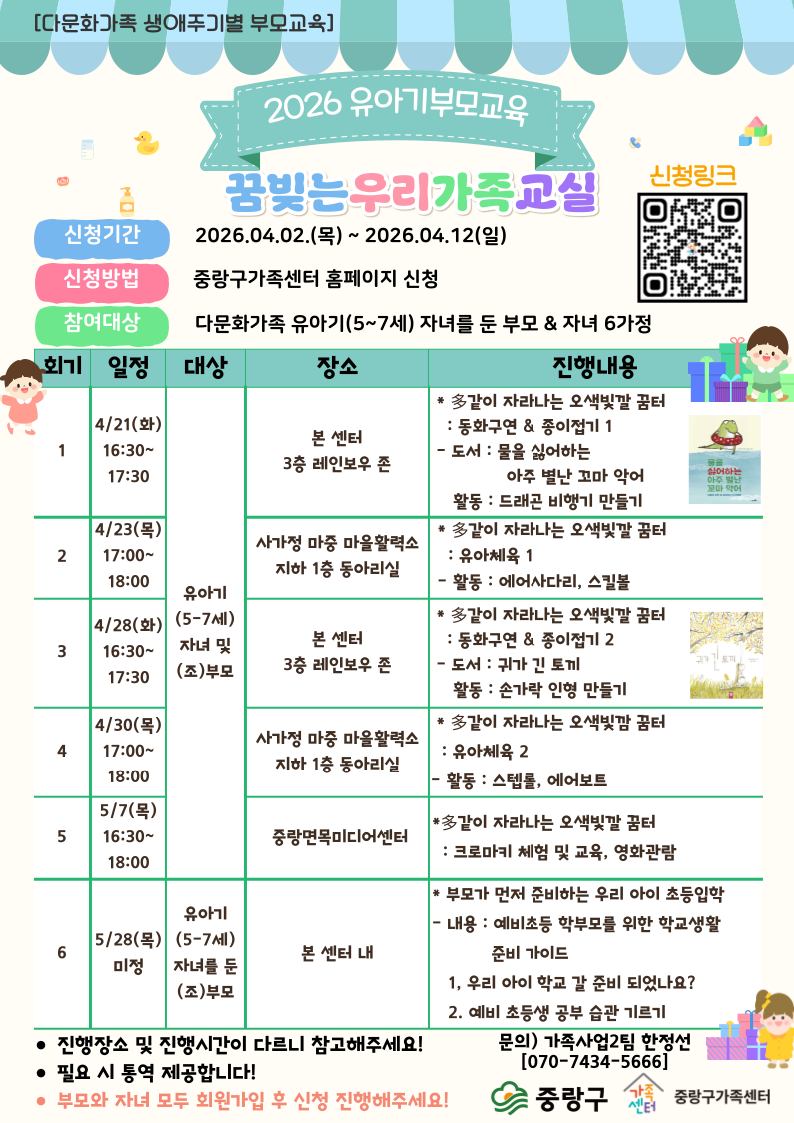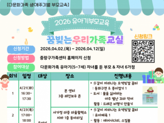 - 다문화가족 유아기(5~7세) 자녀를 둔 부모 및 자녀 중랑구가족센터 외