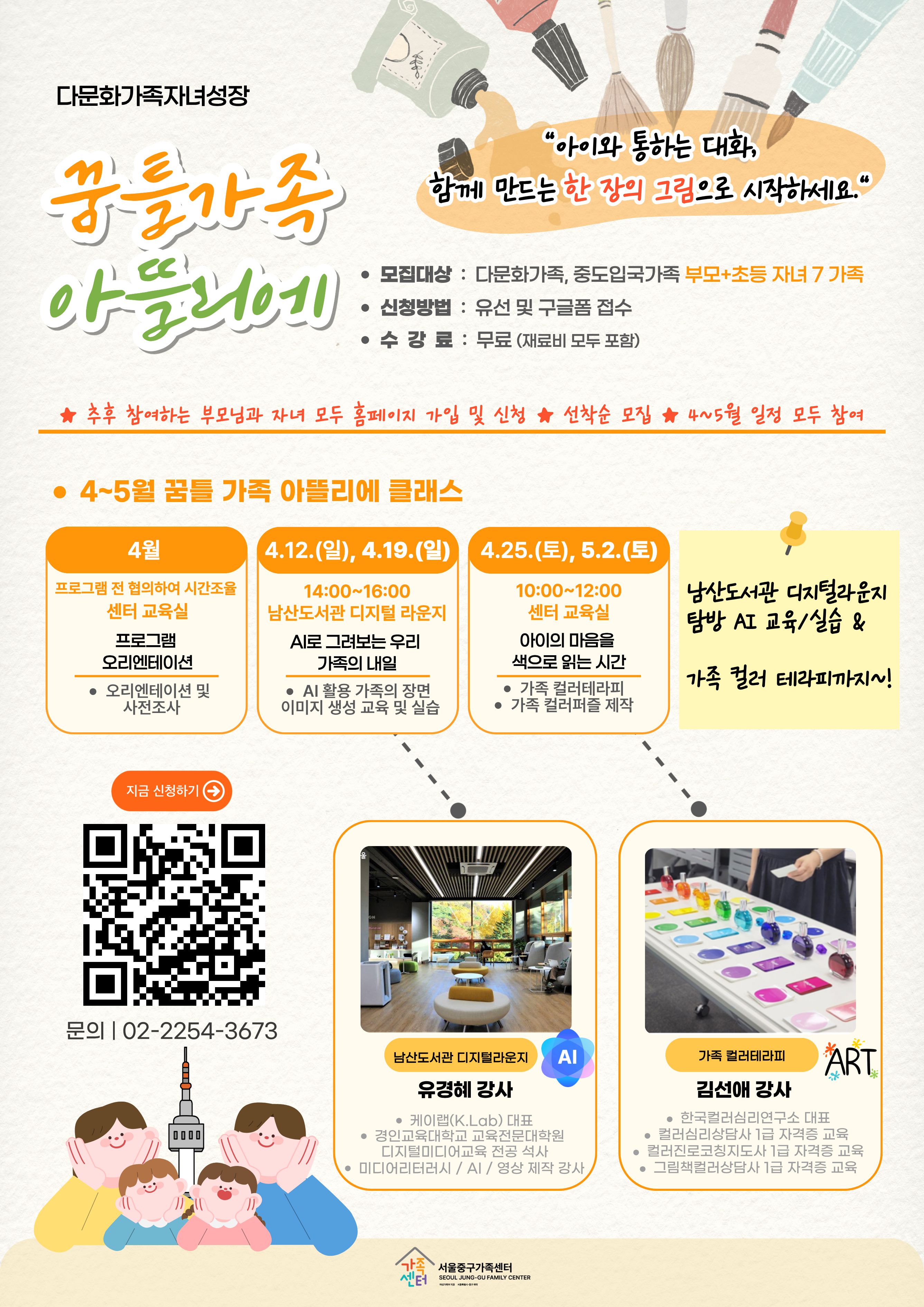 서울중구가족센터에서 다문화 및 중도입국가족을 위해 준비한 특별한 시간, <꿈틀가족 아뜰리에>에 여러분을 초대합니다.
