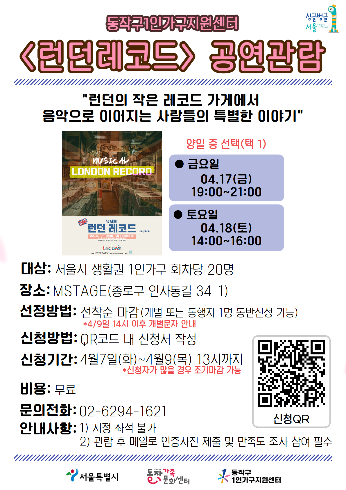 [동작구] 1인가구 대상 <런던레코드> 공연관람