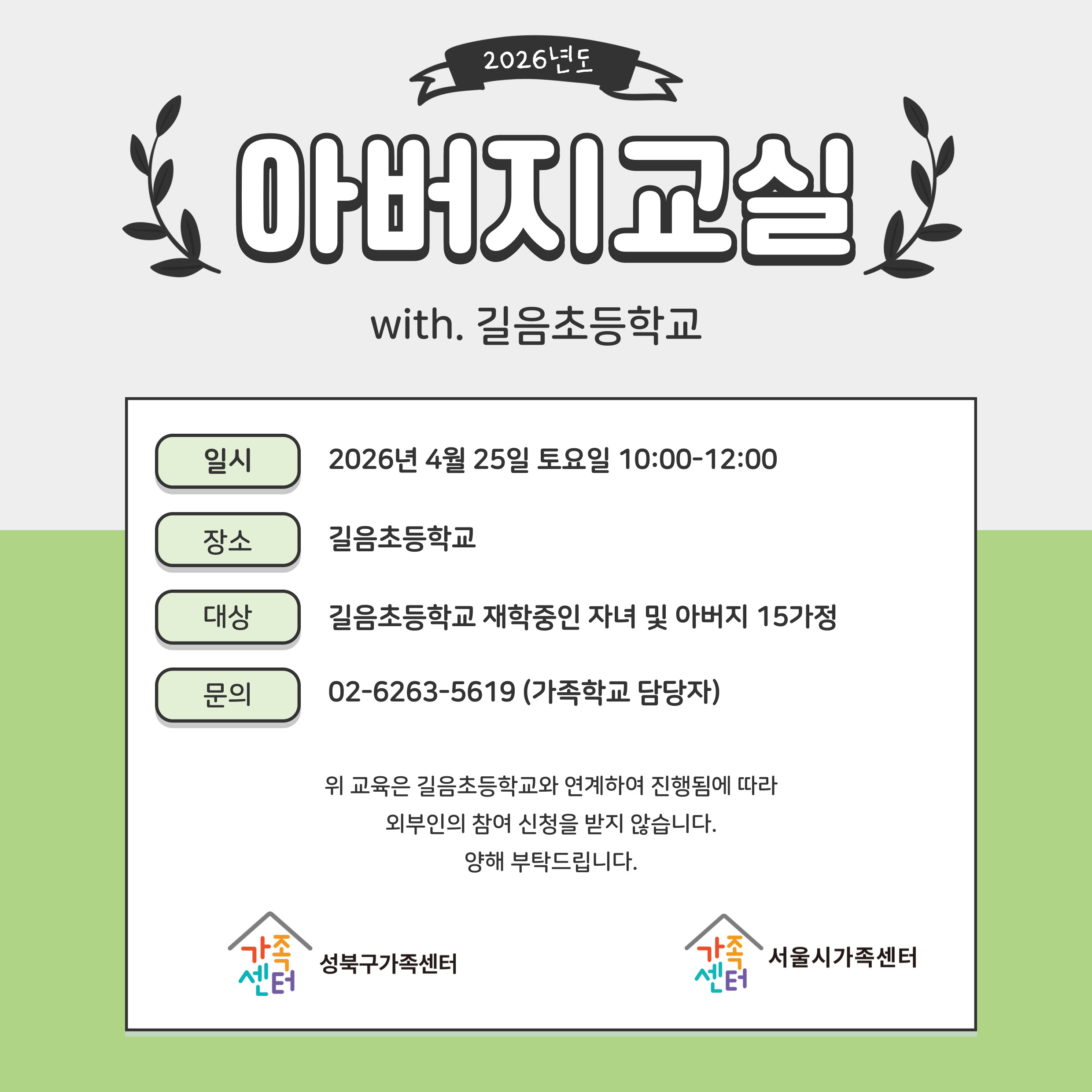 [성북구] 2026년 4월 아버지교실 (with 길음초등학교)