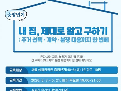 중장년기(40세-64세) 대상 "내 집, 제대로 알고 구하기" 주거교육 참여자를 모집합니다 : )