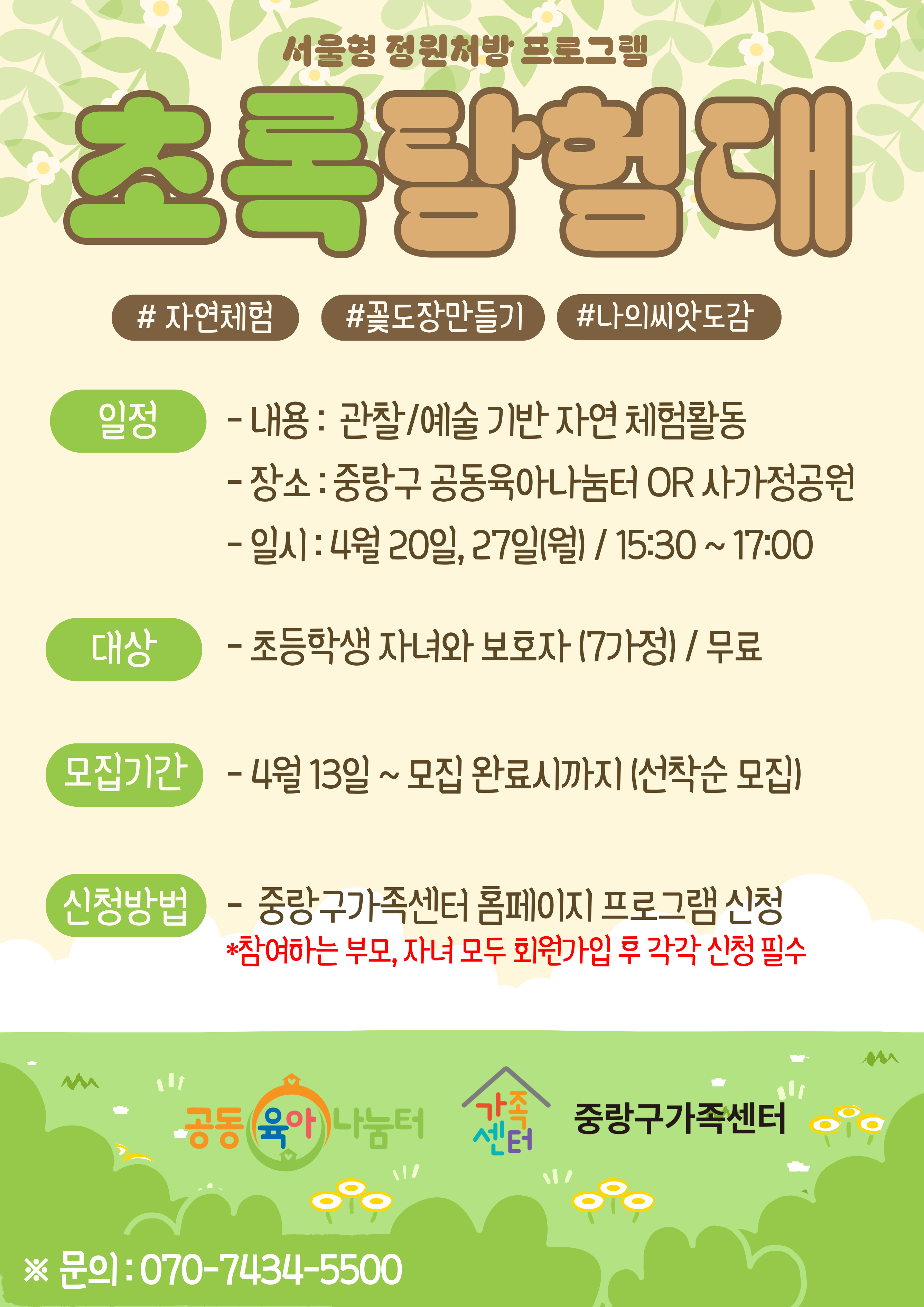 - 중랑구[중랑구] 초등 자연체험 프로그램 '초록탐험대' 참여자 모집