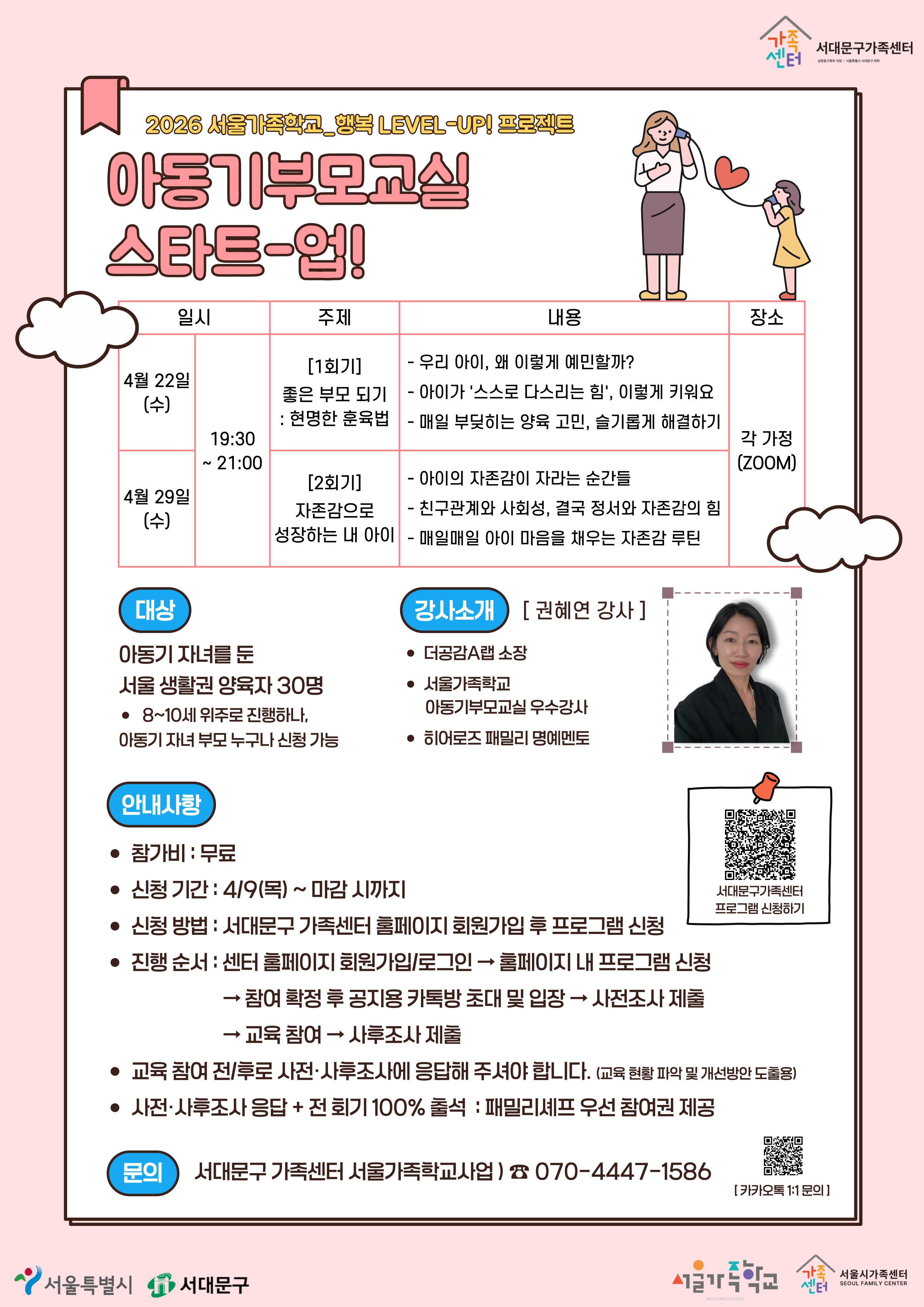 - 서대문구[서대문구] 2026 아동기부모교실 4월 신청접수중