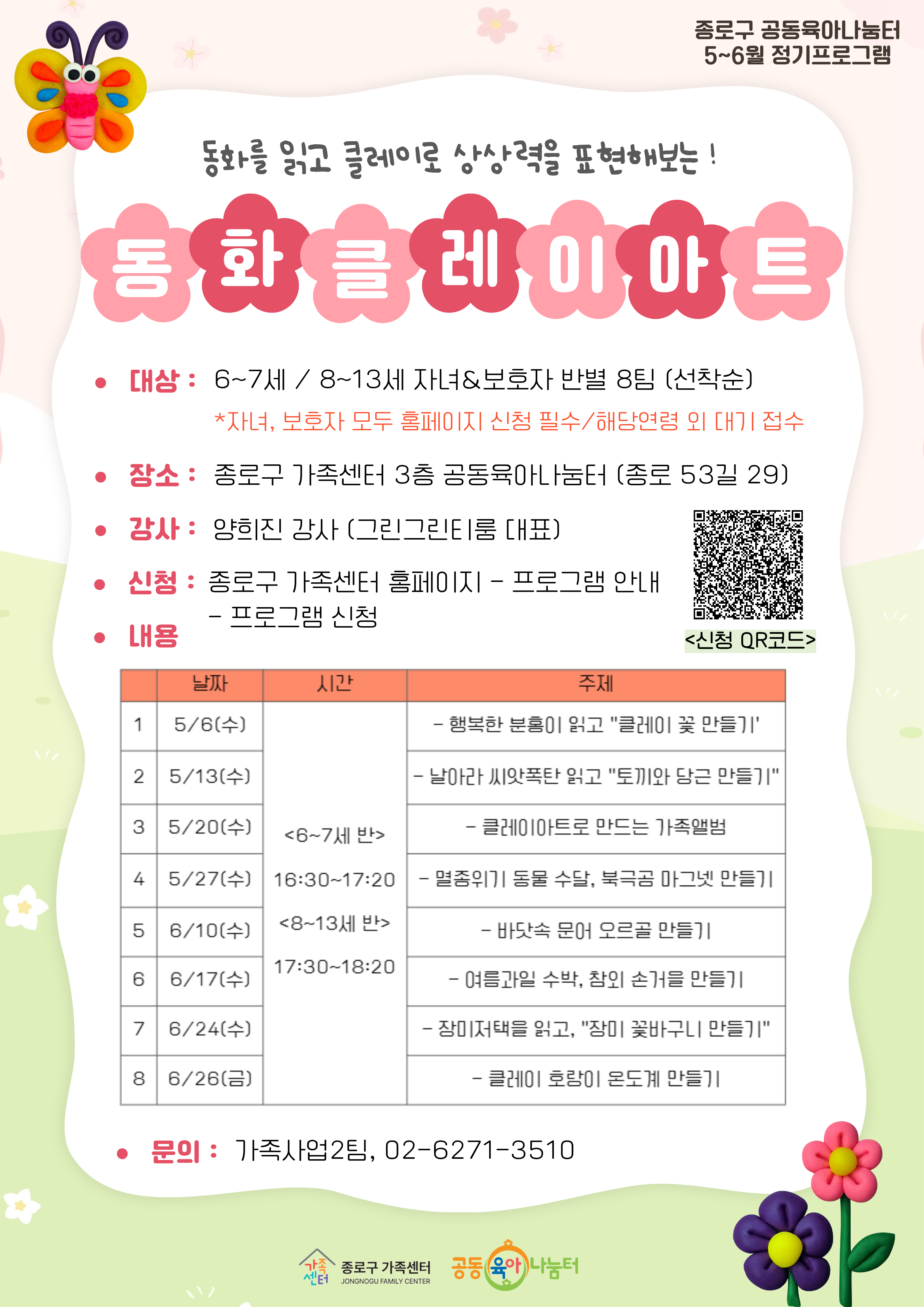 - 종로구[종로구] 5~6월 정기프로그램 '동화클레이아트' 참여자 모집