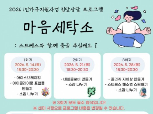 [2026 1인가구지원사업 1인가구 집단상담]