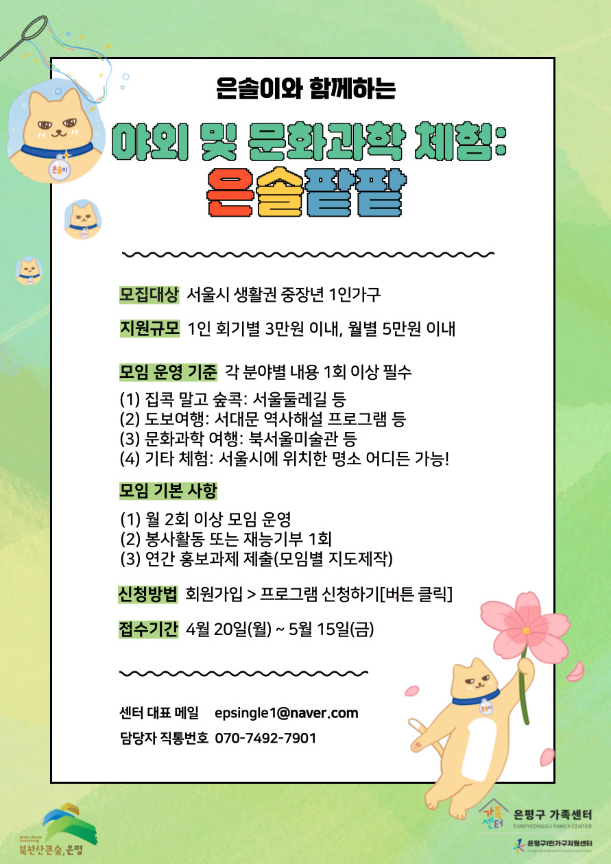 - 문의: 1인가구지원팀 070-7492-7901(은솔팥팥 담당자)