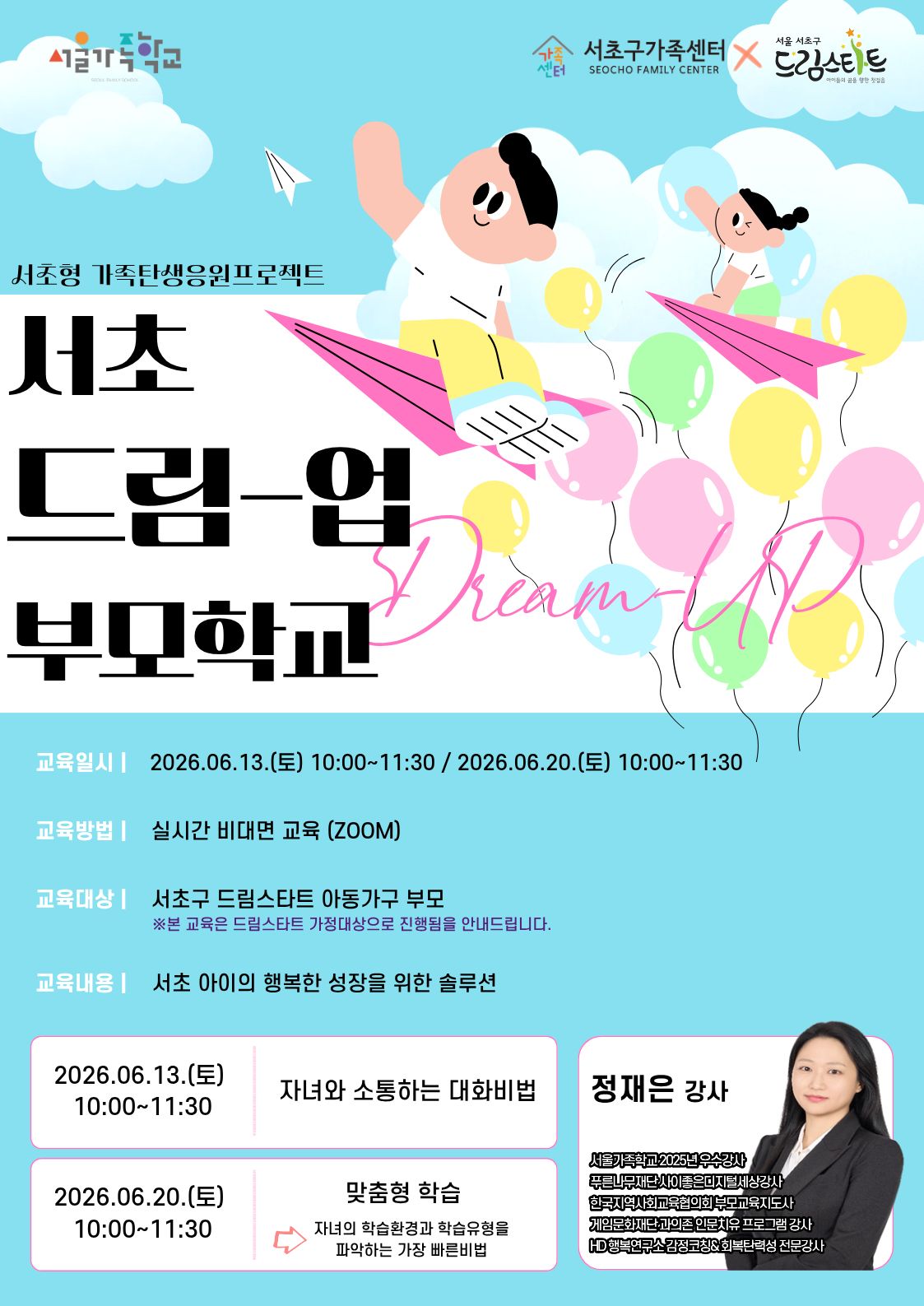 - 서초구[서초구] 2026년 아동기부모교실 '서초 드림-업(Dream-Up) 부모학교' 참여자 모집