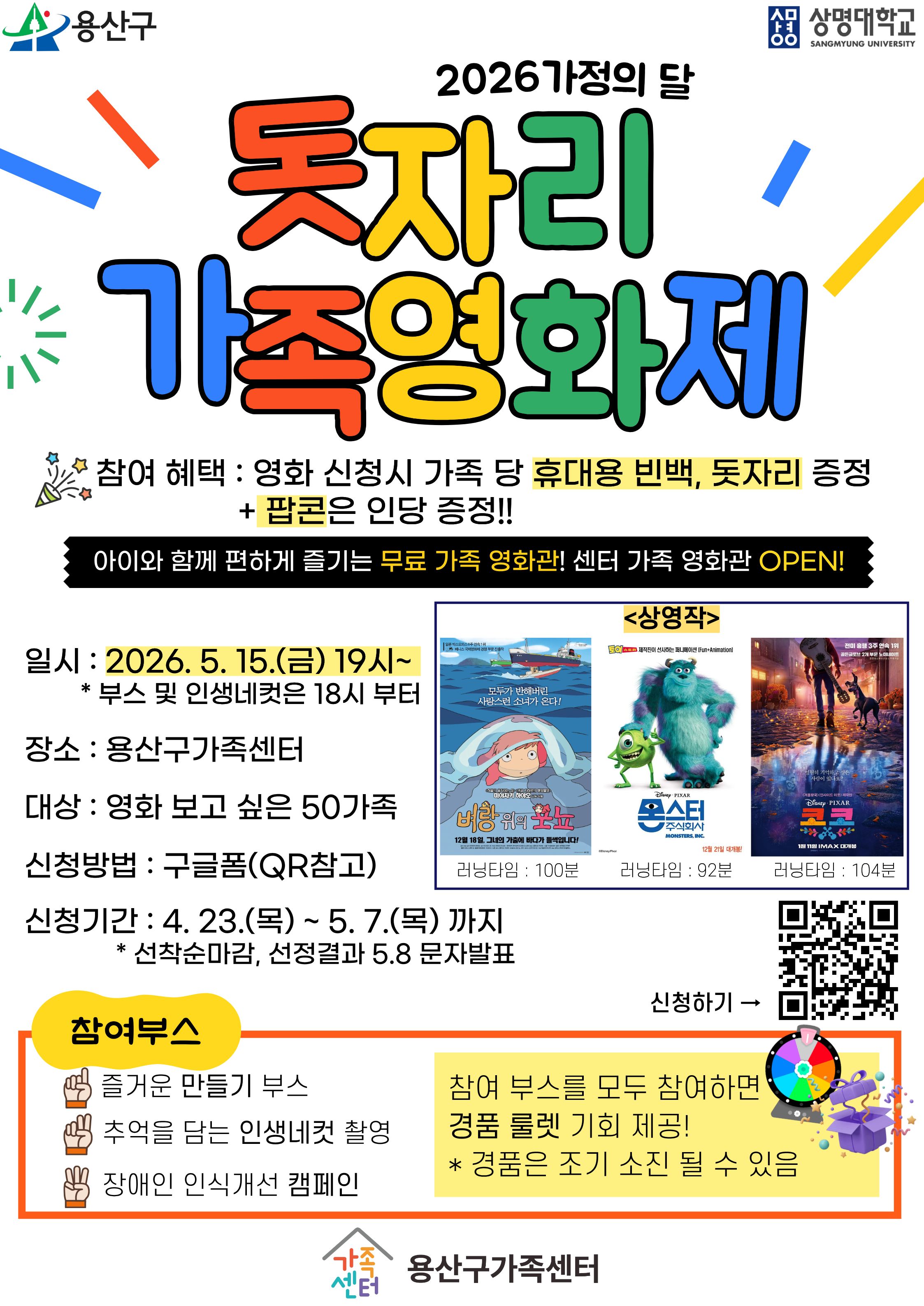 2026 가정의 달 [돗자리 가족영화제] 신청 안내