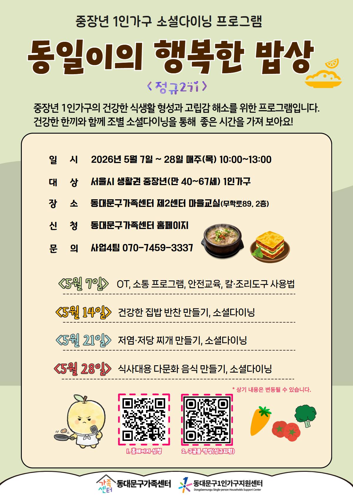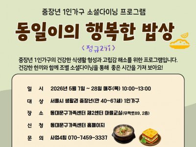 - 서울시 생활권 중장년 1인가구(만40~67세) 동대문구가족센터 제2센터 마을교실