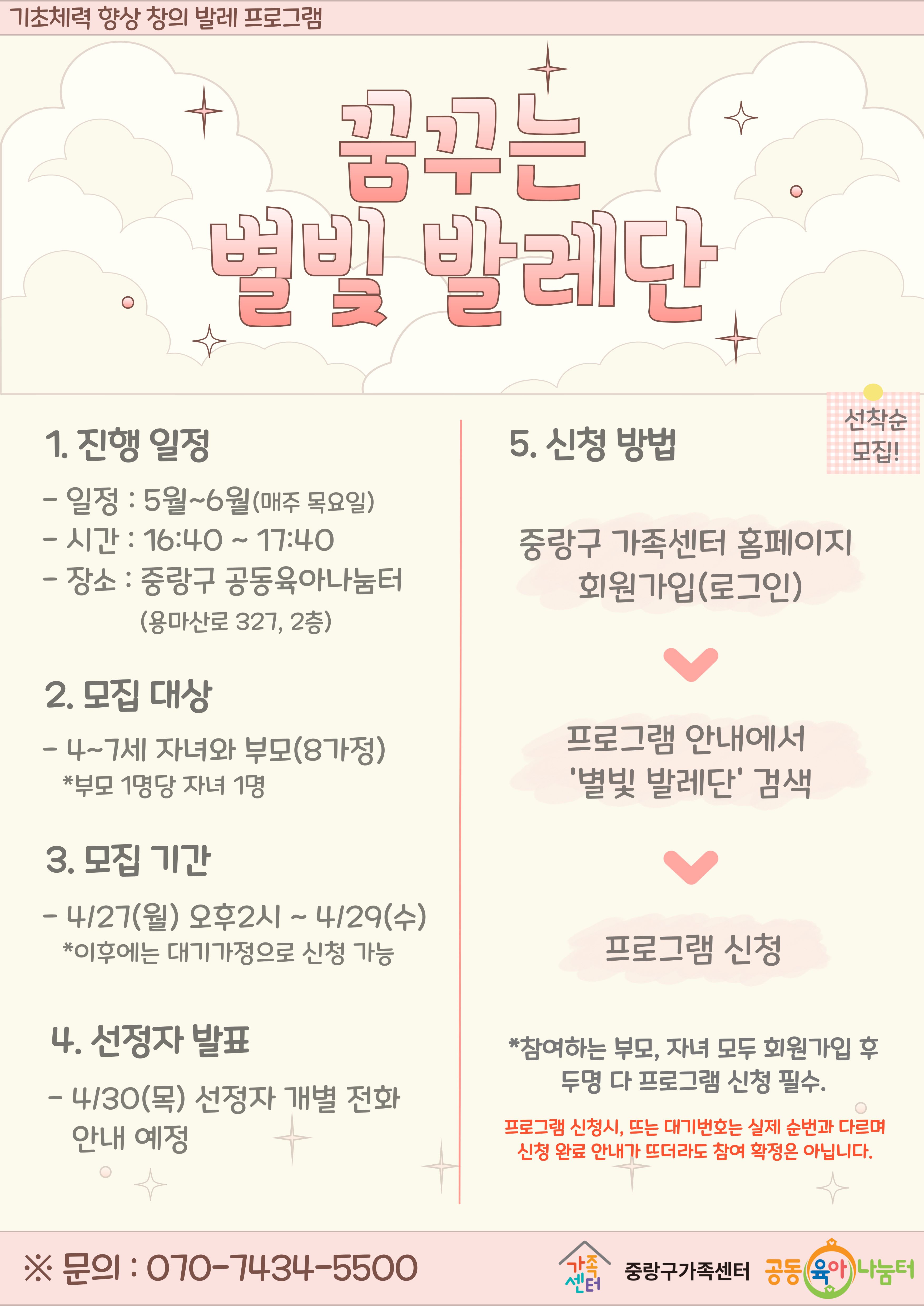 5월부터 유아(4~7세)를 대상으로 한 별빛 발레단 프로그램이 시작됩니다!