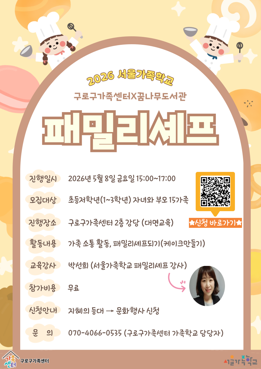 "구로구가족센터와 꿈나무도서관이 함께하는 패밀리셰프 참여자를 모집합니다!