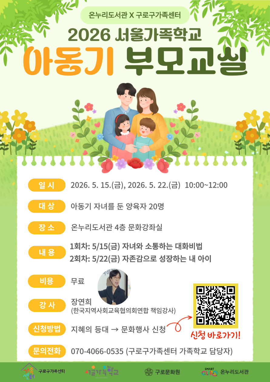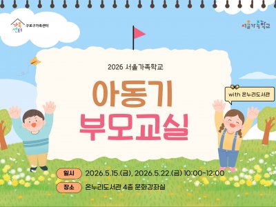 구로구가족센터와 구로구립 온누리도서관이 함께하는 「아동기 부모교실」에 참여할 양육자를 모집합니다!