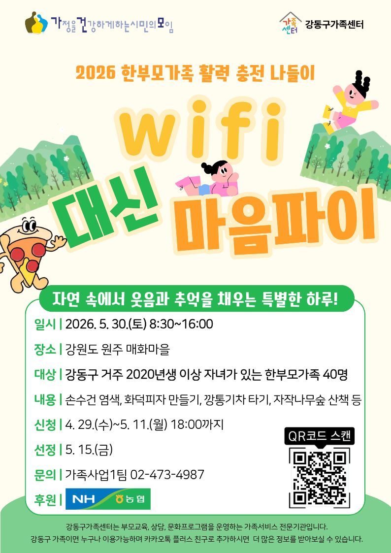 [2026 한부모가족 활력 충전 나들이 ‘와이파이 대신 마음파이’ 참여가족 모집]