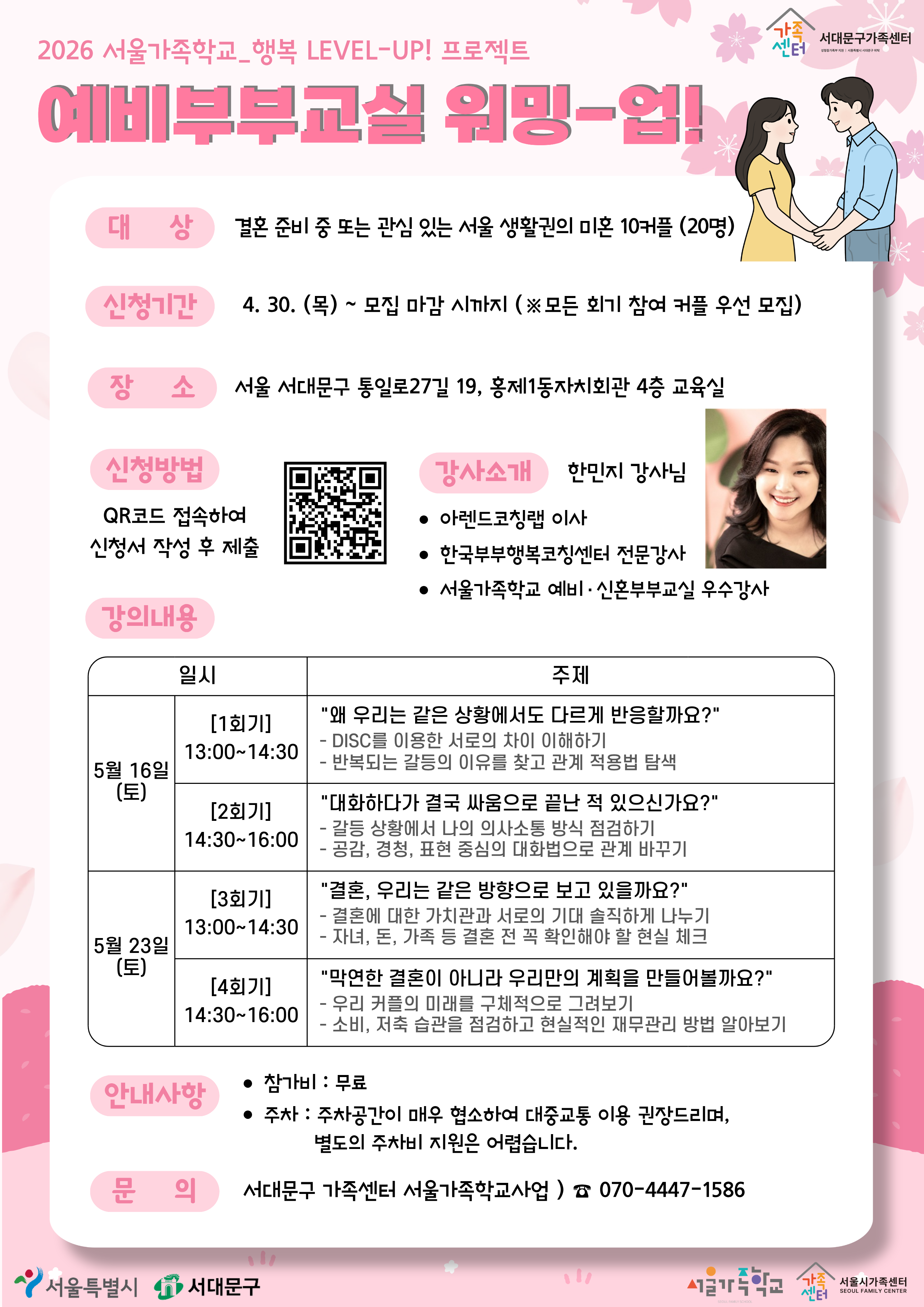 - 서대문구[서대문구] 2026 예비부부교실 '워밍-업!' 참여자 모집 중