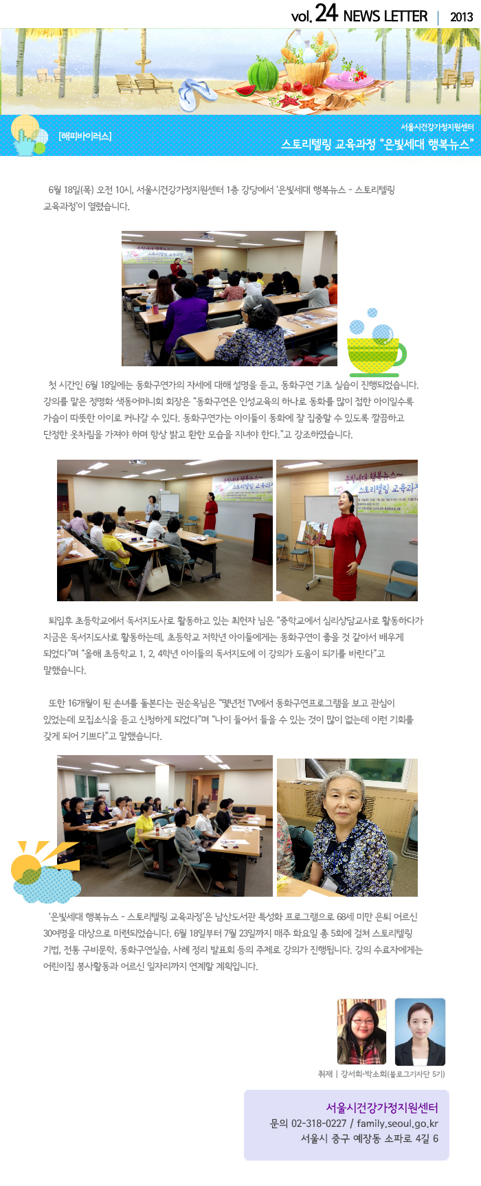 [뉴스레터 24호] [해피바이러스] 스토리텔링 교육과정 "은빛세대 행복뉴스"(서울시)