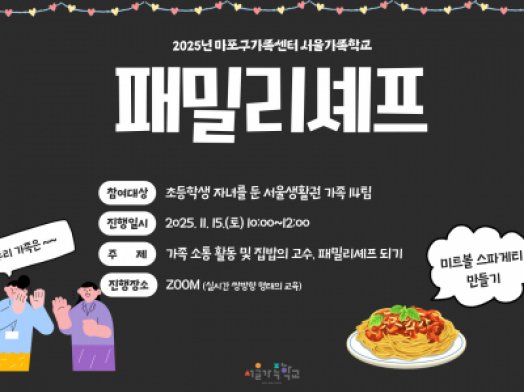 - 마포구[마포구]초등학생 자녀와 함께하는 패밀리셰프 참여가족 모집