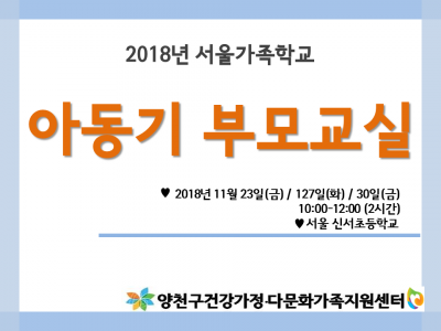 자녀의 인생을 결정하는 아동기, 양천구 [아동기 부모교실]과 함께하세요.