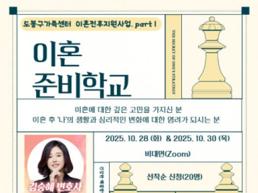 - 도봉구[도봉구] 이혼위기에 있는 부모를 위한 '이혼준비학교' 모집