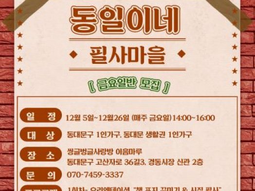 - 동대문구[동대문구]동일이네 필사마을-목요일반