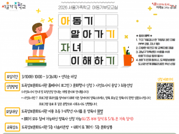 [강동구] 서울가족학교 상반기 아동기부모교실 참여자 모집 (~3/13(금)까지)