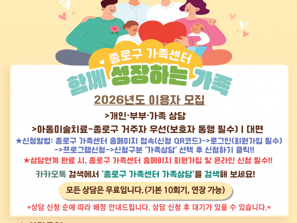 [종로구] 2026년도 '함께 성장하는 가족'을 꿈꾸는 부부가족상담 신청자 상시모집