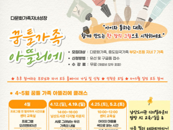 서울중구가족센터에서 다문화 및 중도입국가족을 위해 준비한 특별한 시간, <꿈틀가족 아뜰리에>에 여러분을 초대합니다.