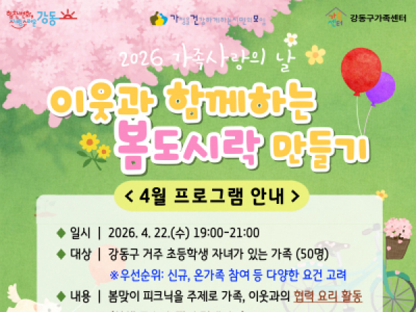 [강동구] 가족사랑의 날 4월 프로그램 '이웃과 함께하는 봄도시락 만들기' 참여가족 모집