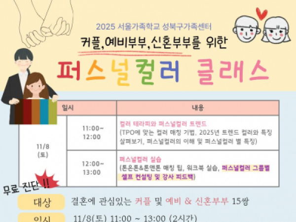 결혼에 관심있는 커플 및 예비&신혼부부들을 위한 '퍼스널컬러 클래스'가 진행됩니다!