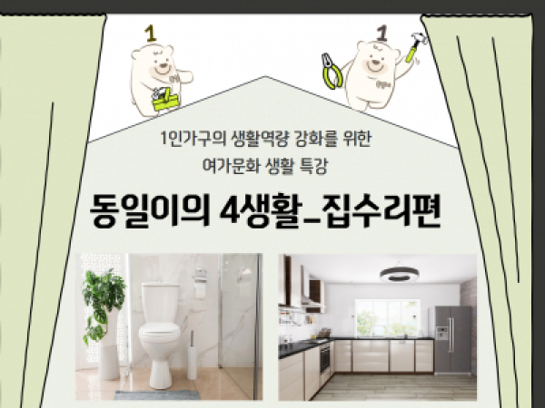 공간별 가구 배치법을 배워보고, 1인가구에게 필요한 집수리 실습을 진행해보아요!