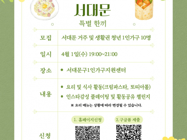 [서대문구] 2026 건강한 밥상 「한끼로 잇는 서대문」 특별기수 1기 (특별한 끼)