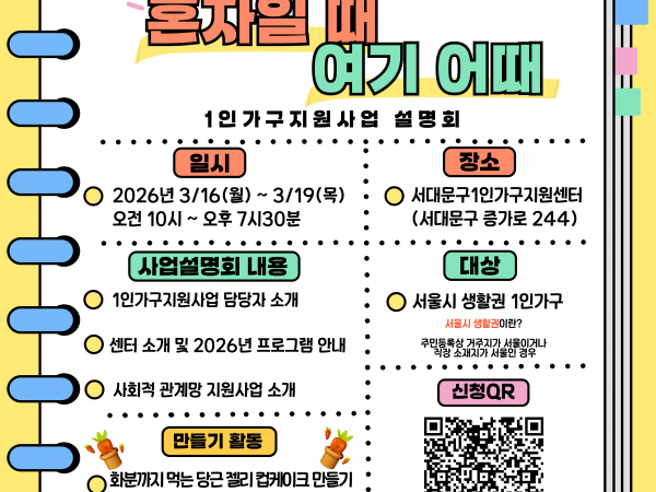 [서대문구] 2026년 서대문구 1인가구지원사업 설명회 '혼자일 때, 여기 어때'