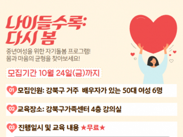[강북구]중년 여성 자기돌봄 프로그램 다시봄 참여자 모집