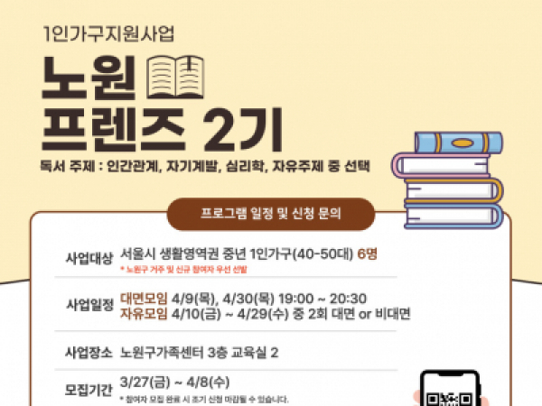 [노원구] 1인가구 독서커뮤니티 프로그램 '노원프렌즈 2기' 참여자 모집 중