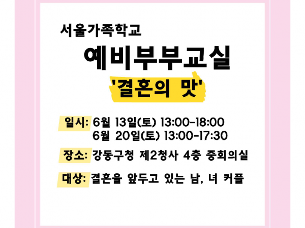 [서초구] 예비부부교실 '우리 가족할까요?' 2021.04.15 ★★★신청접수기간 연장 : ~05.02(일) 까지★★★ 2021 서울가족학교 예비부부교실(온라인)