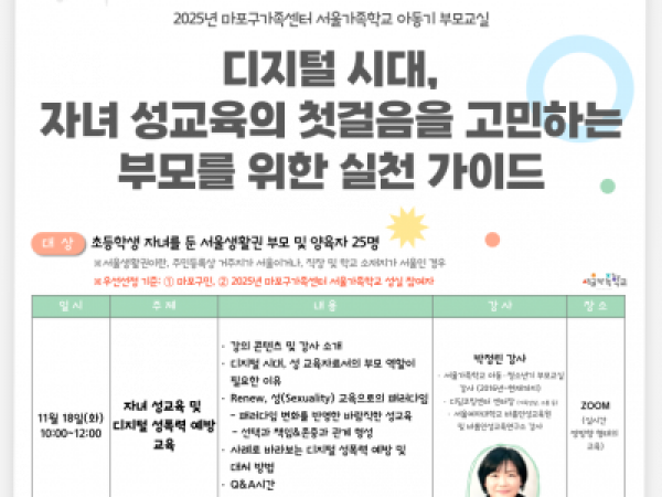 [마포구]2025년 아동기 부모교실 '자녀 성교육 및 디지털 성폭력 예방 교육' 모집